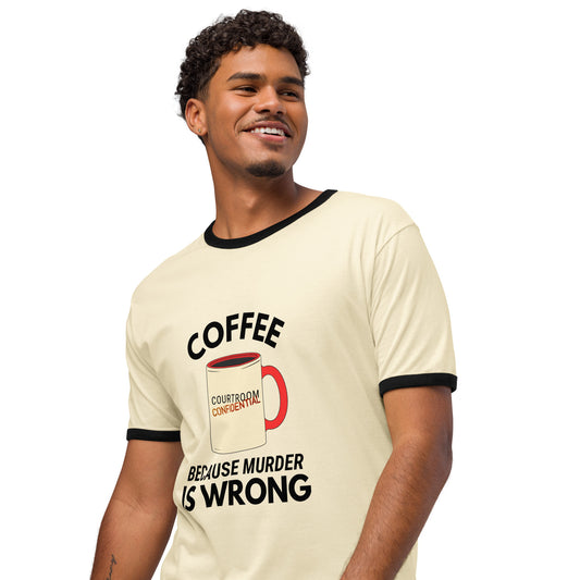"Coffee Because Murder is Wrong" Unisex Graphic Ringer Tee