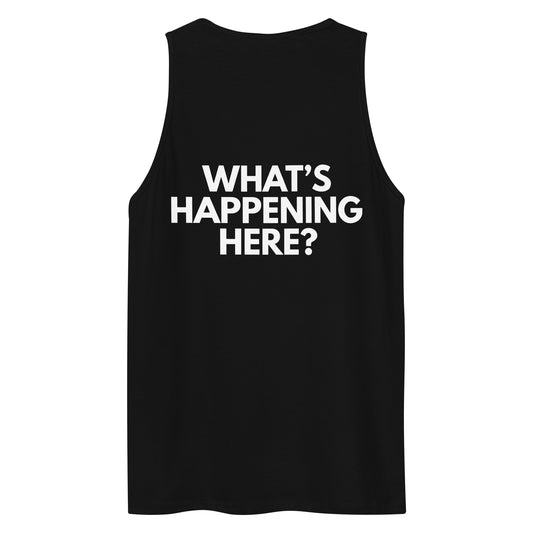 Men’s Black Tank Top - What's Happening Here? - FULL LOGO